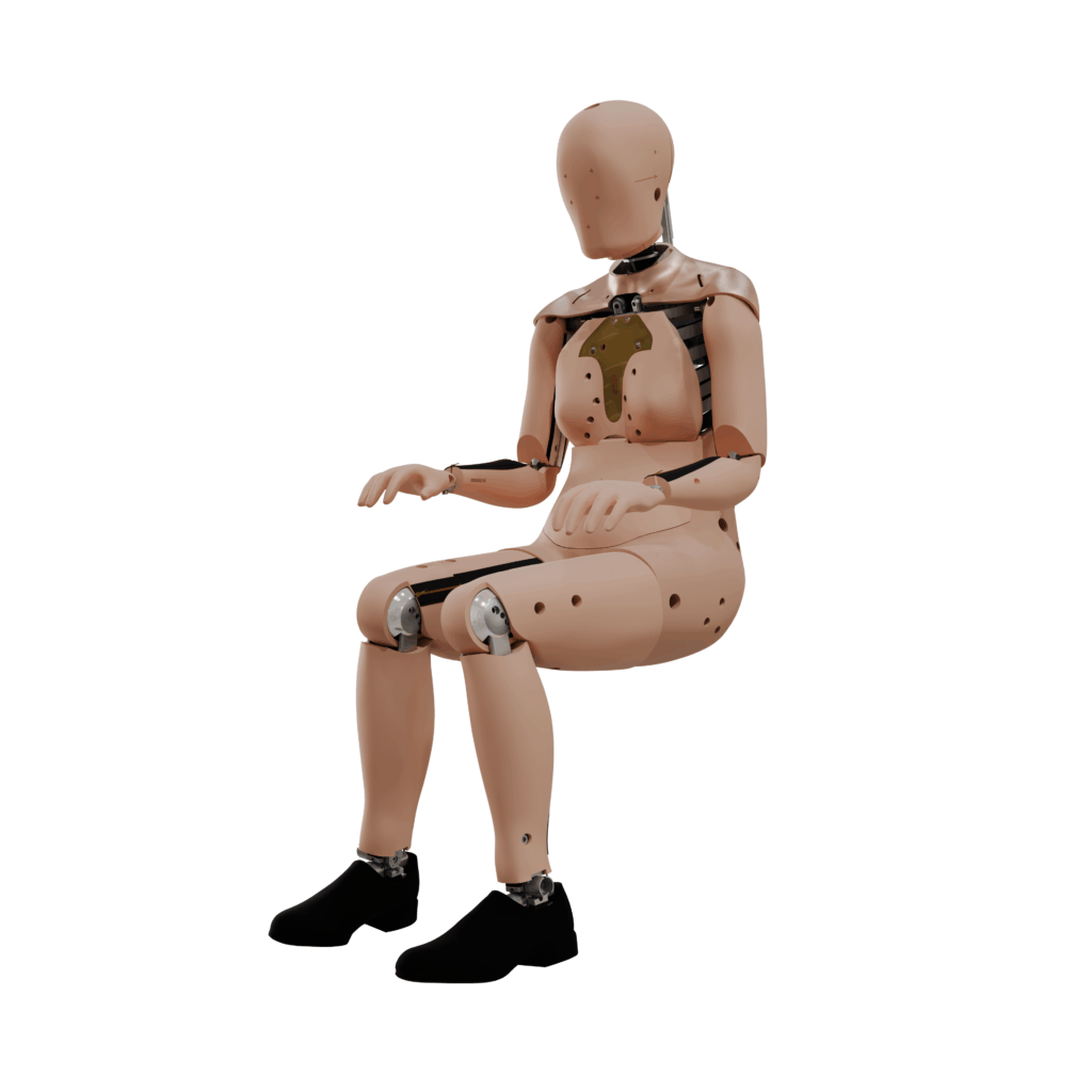 The THOR-5F is currently under development by NHTSA. The technology for this dummy is based on the THOR-50M but the design is targeting small female specific response curves and injury data. The THOR-5F is the first adult dummy designed with the APTS twin pressure sensors in the abdomen.
